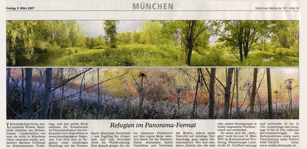 nämlich durch die der Phantasie. Dabei entstanden durch Kombination und Montage aber unter Verzicht auf jegliche unnötige Verfremdung ganz eigene Naturszenarien. Wer sich auskennt, könnte also die eine oder andere Baumgruppe in bisher